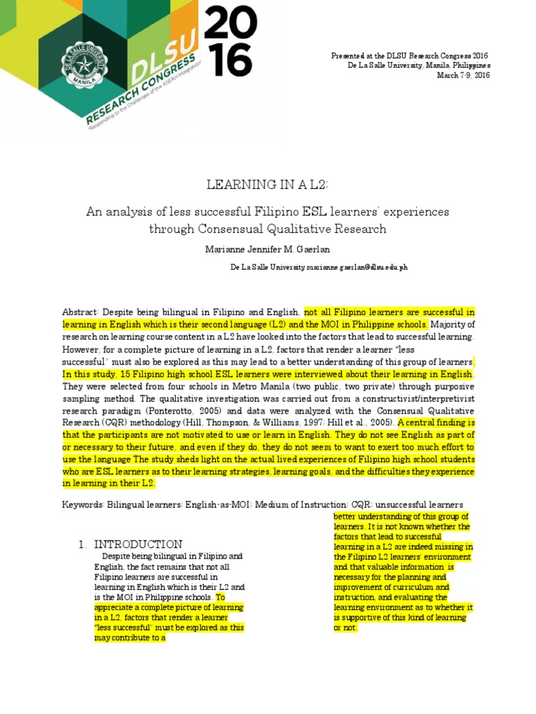 A qualitative exploratory study on zines and its promotion of filipino youth culture. See table ∙ qualitative researchers' assumptions about research often differ from those of quantitative researchers ∙ answers to these questions can differ among qualitative researchers ∙ research. A guide to qualitative, quantitative, and humanities research. When it comes right down to it, the average filipino will have one of the most diverse genetic makeups of. .is a need for filipinos to learn research from the lens and experience of filipino researchers.